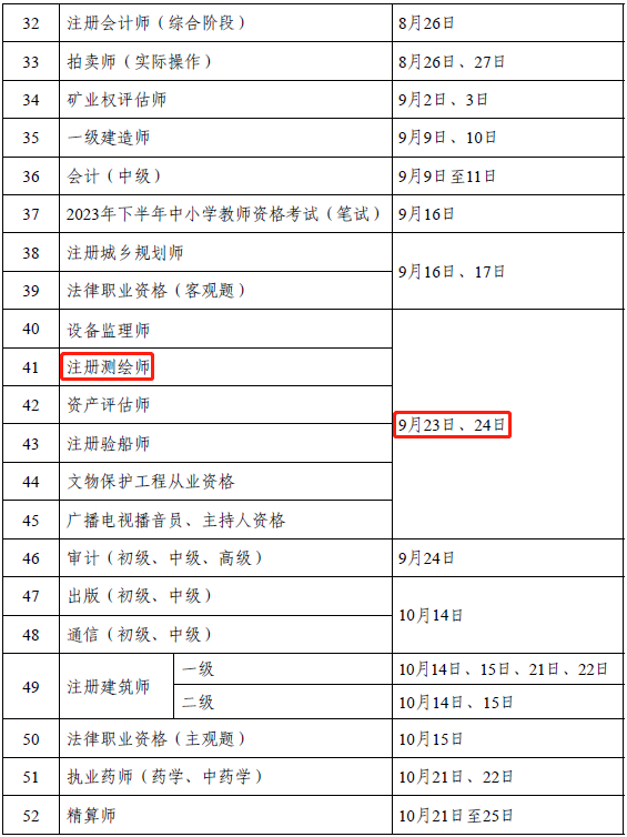 2023年注册测绘师考试时间为:9月23日-9月24日