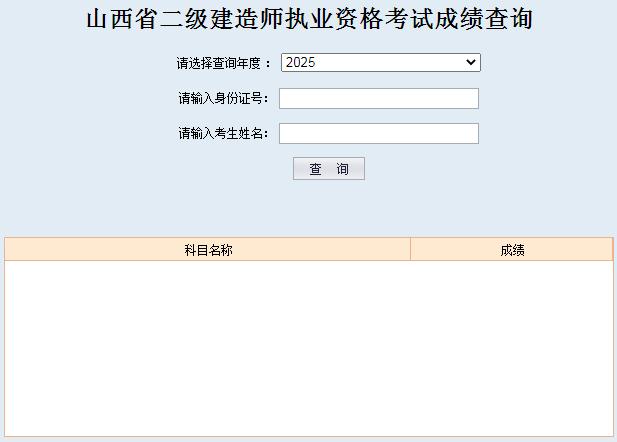 考生可点击进入山西省2025年二建考试成绩查询入口: