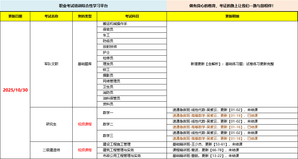 职业考试培训综合性学习平台,做有良心的教育,考证路上让我们一路与您相伴!
