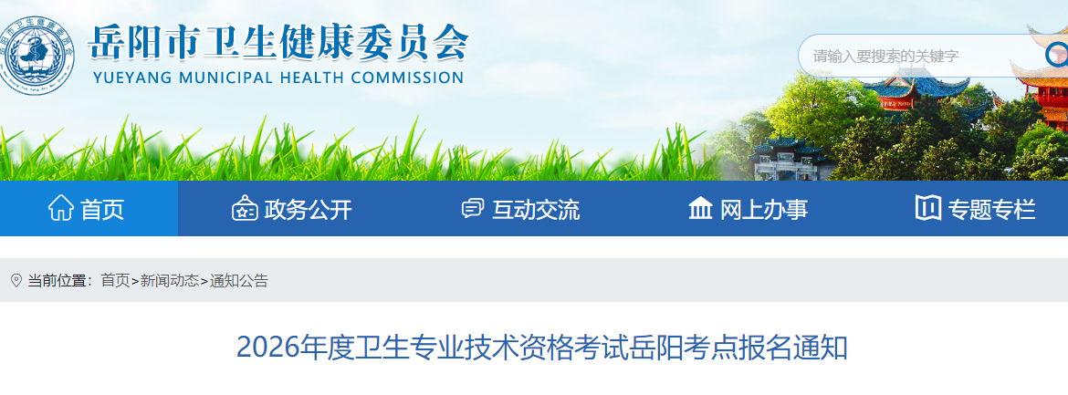 关于做好湖南岳阳2026年度卫生专业技术资格考试考点报名通知