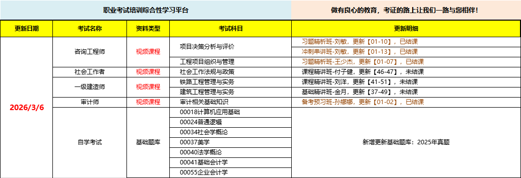 职业考试培训综合性学习平台,做有良心的教育,考证路上让我们一路与您相伴!