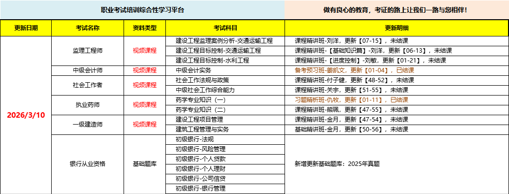 职业考试培训综合性学习平台,做有良心的教育,考证路上让我们一路与您相伴!