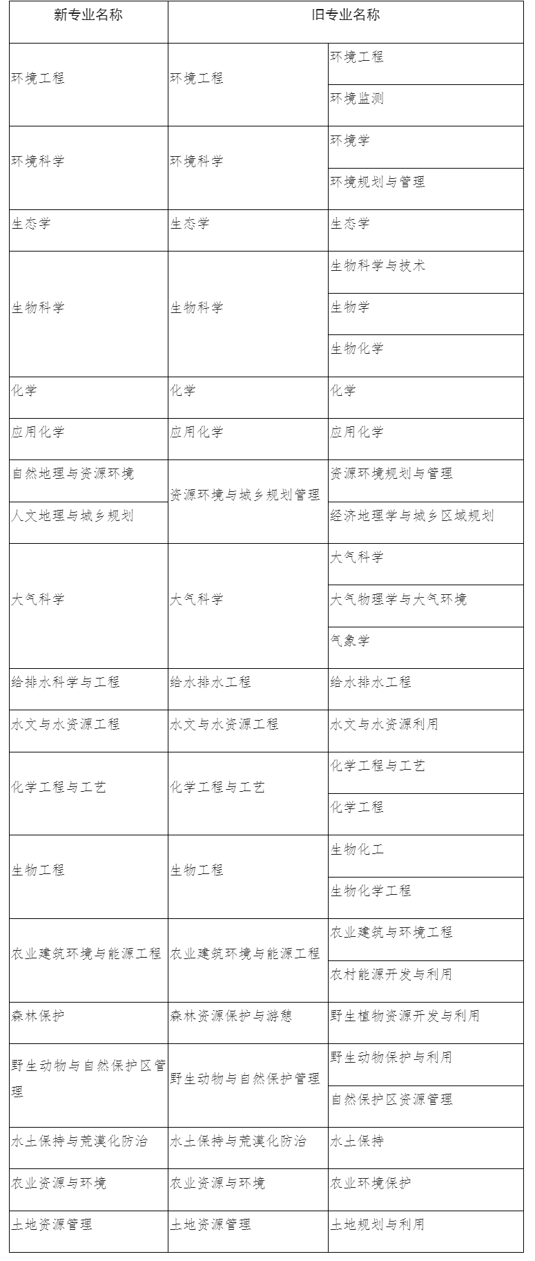 1.附件1:环境保护相关专业新旧对应表
