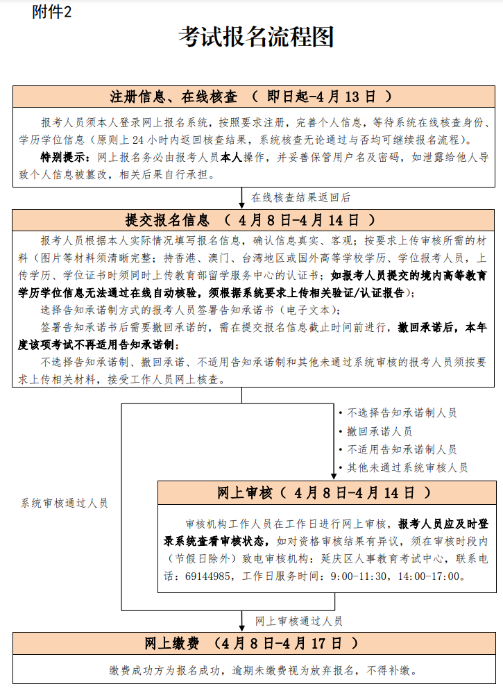 3.网上缴费时间为2026年4月8日至4月17日。完成报名提交并通过审核的人员可进行网上缴费,缴费成功方为报名成功。报考人员报名成功后,已缴费用不予退还。